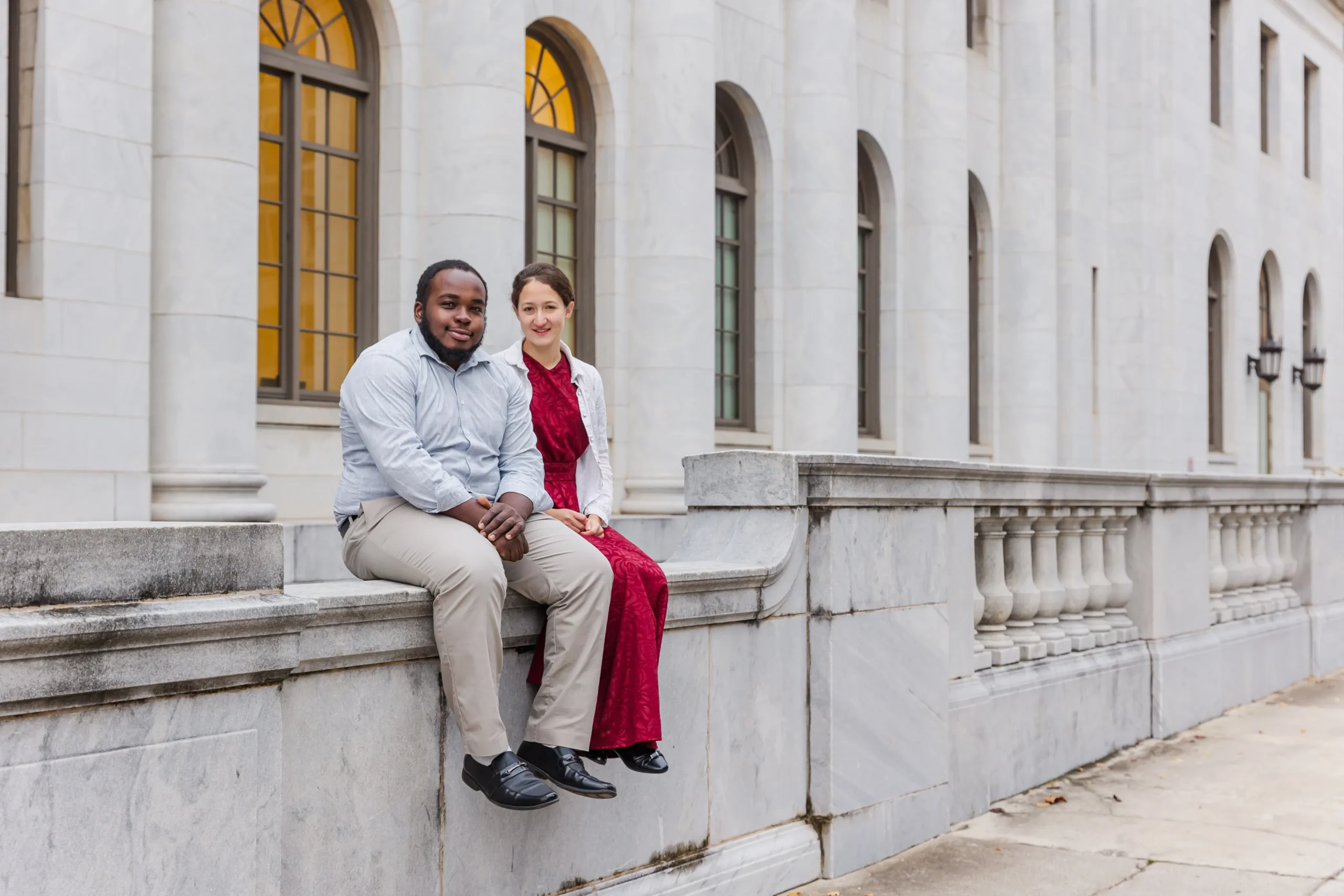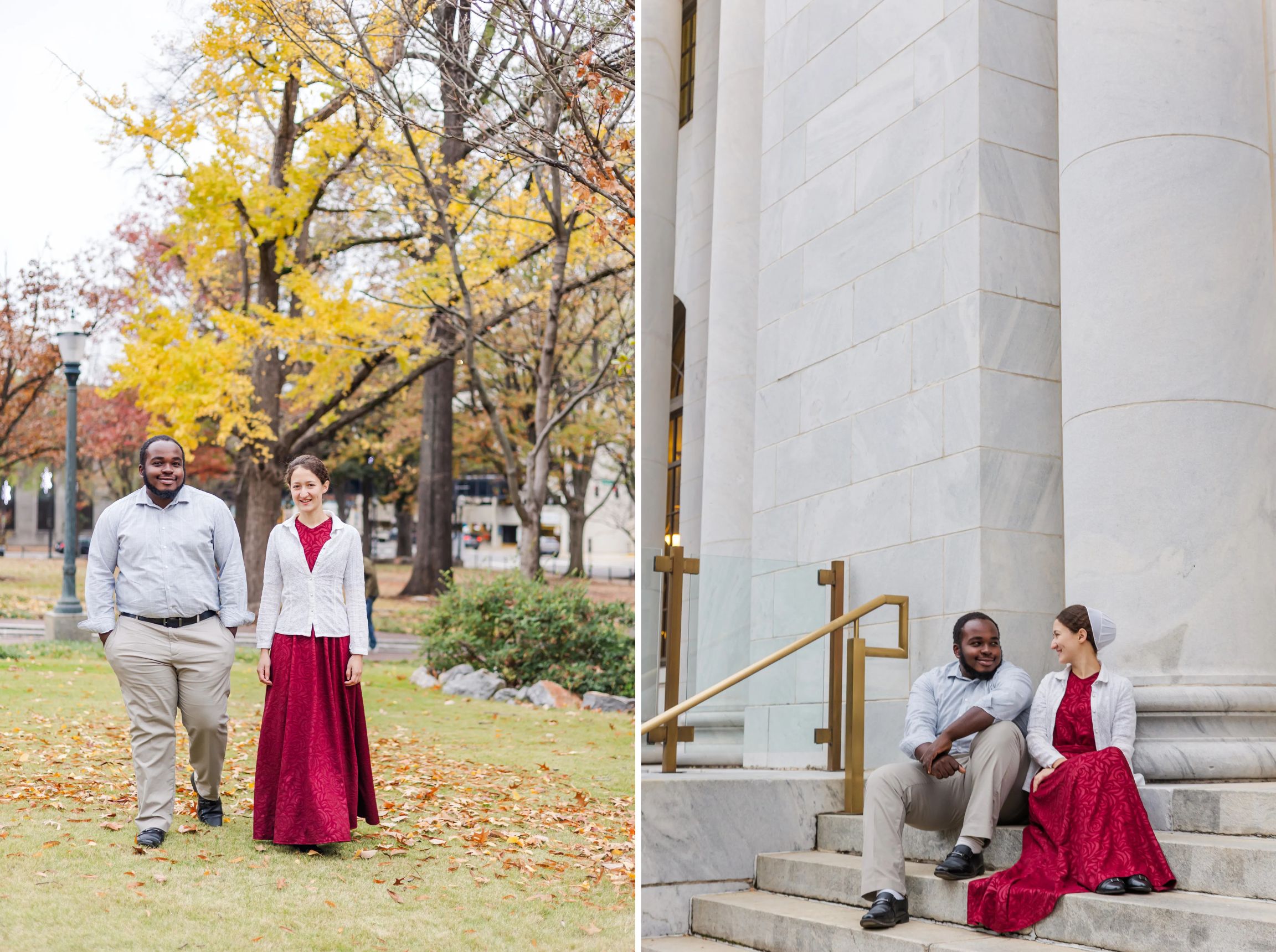 I met Jasper and Cheyanne in Birmingham for their engagement session. It was a little on the chilly and windy side but you would never know to judge by their smiles and how much fun we had! We went to the Probate Court building and the Federal Courthouse and they both provided a great location. I know those seem like a strange location for a photo shoot, but I think I’ll let the pictures tell you why! There was also a park close enough to use and we even found some fall color!